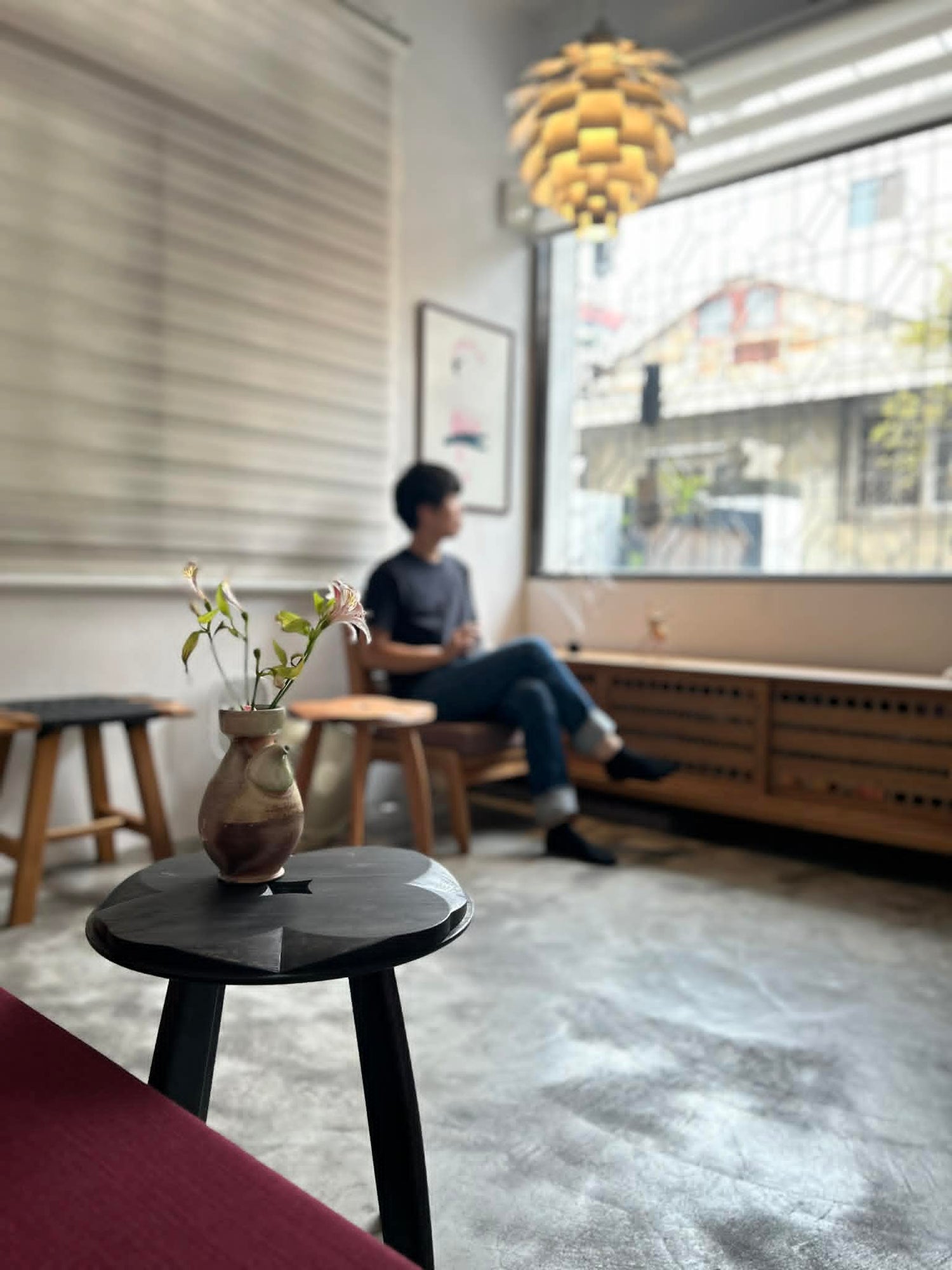 花束凳 Hanataba 是從零開始構思的作品,以他這段旅居期間心境的改變,邊畫圖邊討論中被創造出來的。